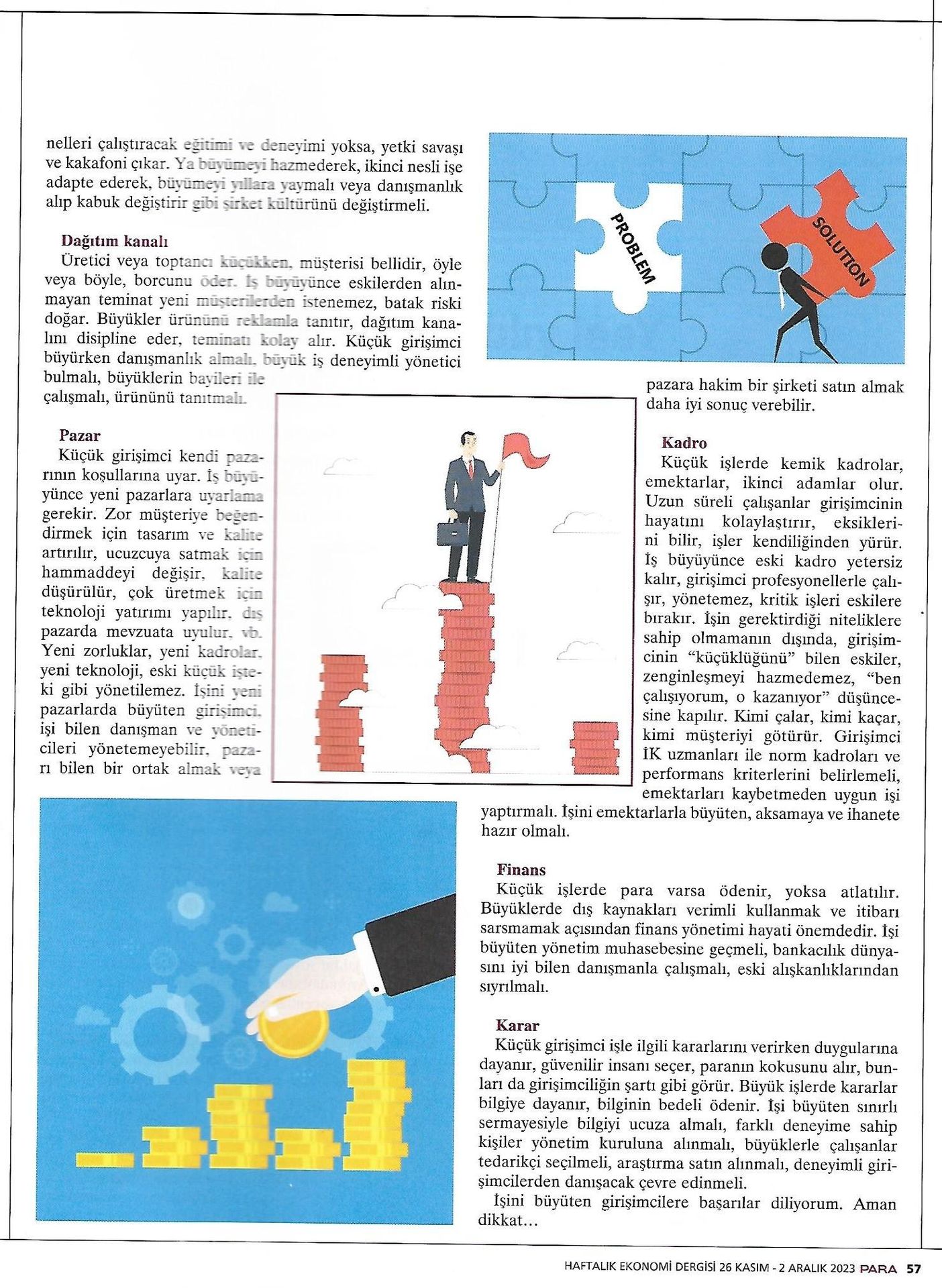 Küçük girişimcilerin işini büyütürken yaşadığı sorunlara ve çözümlere gelelim.