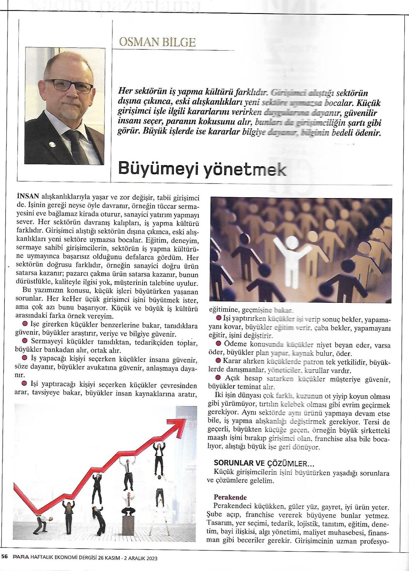 Perakendeci küçükken, güler yüz, gayret, iyi ürün yeter. Şube açıp, franchise vererek büyüyene bunlar yetmez. Tasarım, yer seçimi, tedarik, lojistik, tanıtım, eğitim, denetim, bayi ilişkisi, algı yönetimi, maliyet muhasebesi, finansman gibi beceriler gerekir. Girişimcinin uzman profesyonelleri çalıştıracak eğitimi ve deneyimi yoksa, yetki savaşı ve kakafoni çıkar. Ya büyümeyi hazmederek, ikinci nesli işe adapte ederek, büyümeyi yıllara yaymalı veya danışmanlık alıp kabuk değiştirir gibi şirket kültürünü değiştirmeli.