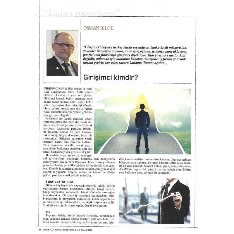Girişimci paraya, binaya değil, kendine yatırım yapar. Akıllı girişimci stratejik, taktik, lojistik yatırımını planlar. Hayat yolunu baştan çizer, hedefe yürür.