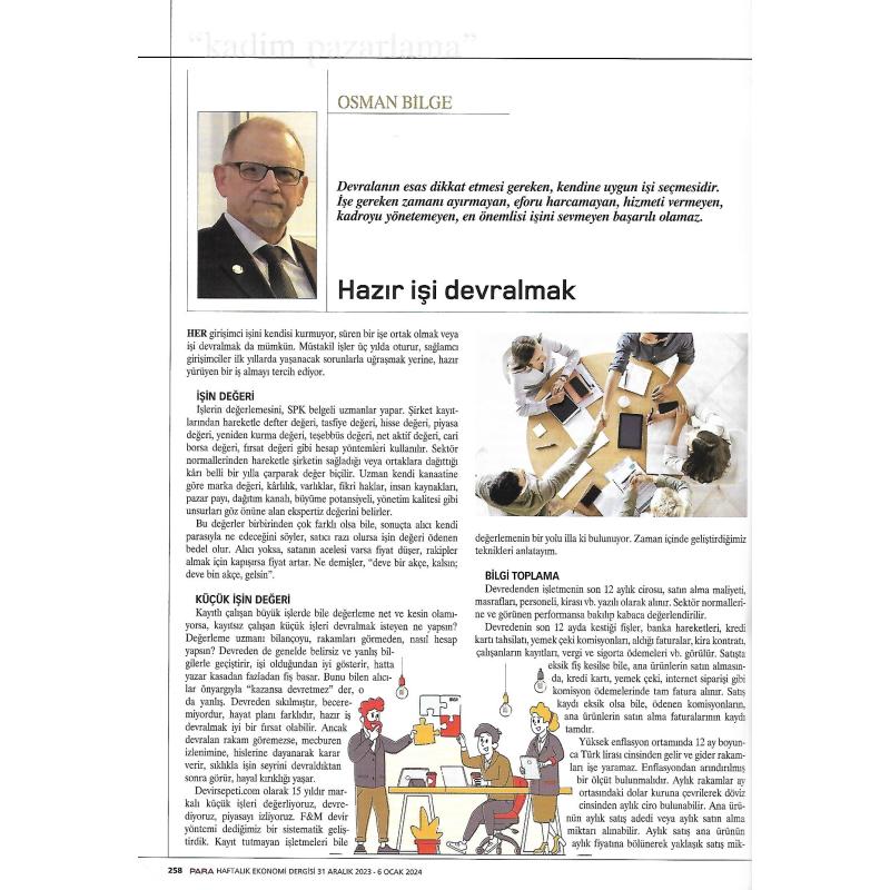 Hazır iş devralmak istiyorsanız, öncelikle doğru bilgiye ulaşmalısınız. İşi bizzat araştırmalı, artısını eksisini anlamalısınız. Devreden istediği fiyatı almak için olumsuz yanları göstermez, aracılar komisyon almak için olumlu yanları öne çıkarır, tanıdıklar sorumluluk almamak için olumsuz yanları öne çıkarır. Doğru bilgiyi işi bilen bağımsız uzmanlar verir.
