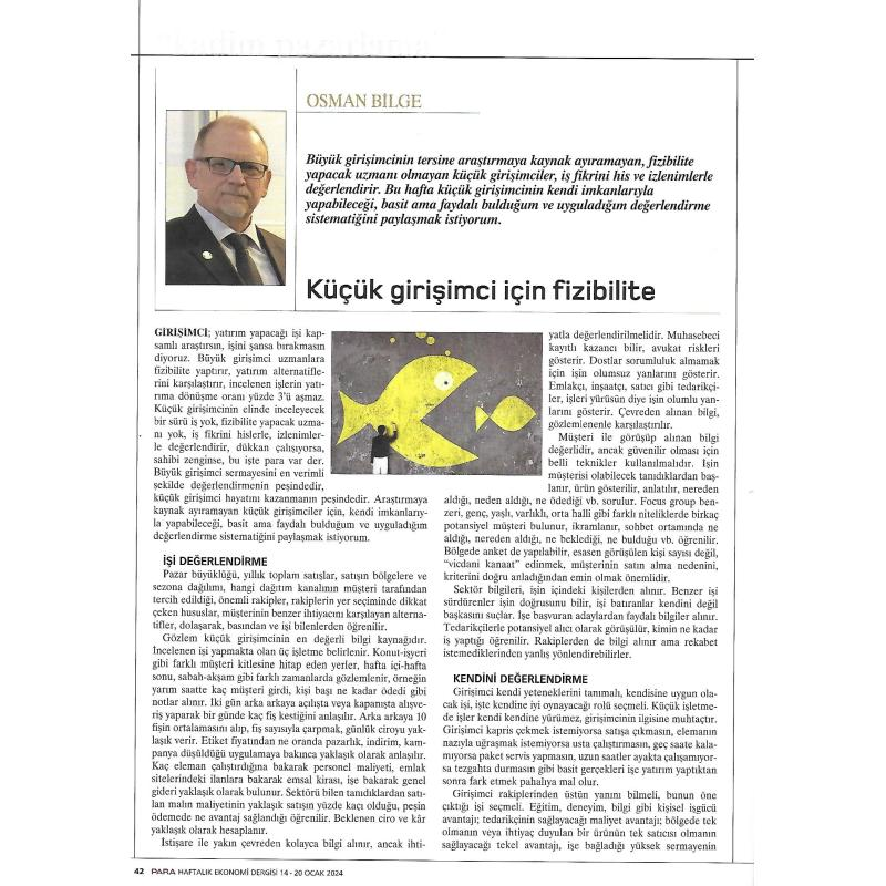 Girişimci yatırım yapacağı işi kapsamlı araştırsın, işini şansa bırakmasın diyoruz. Büyük girişimci uzmanlara fizibilite yaptırır, yatırım alternatiflerini karşılaştırır, incelenen işlerin yatırıma dönüşme oranı %3’ü aşmaz. Küçük girişimcinin elinde inceleyecek bir sürü iş yok, fizibilite yapacak uzmanı yok, iş fikrini hislerle, izlenimlerle değerlendirir, dükkan çalışıyorsa, sahibi zenginse, bu işte para var der. Büyük girişimci sermayesini en verimli şekilde değerlendirmenin peşindedir, küçük girişimci hayatını kazanmanın peşindedir. Araştırmaya kaynak ayıramayan küçük girişimciler için, kendi imkanlarıyla yapabileceği, basit ama faydalı bulduğum ve uyguladığım değerlendirme sistematiğini paylaşmak istiyorum.