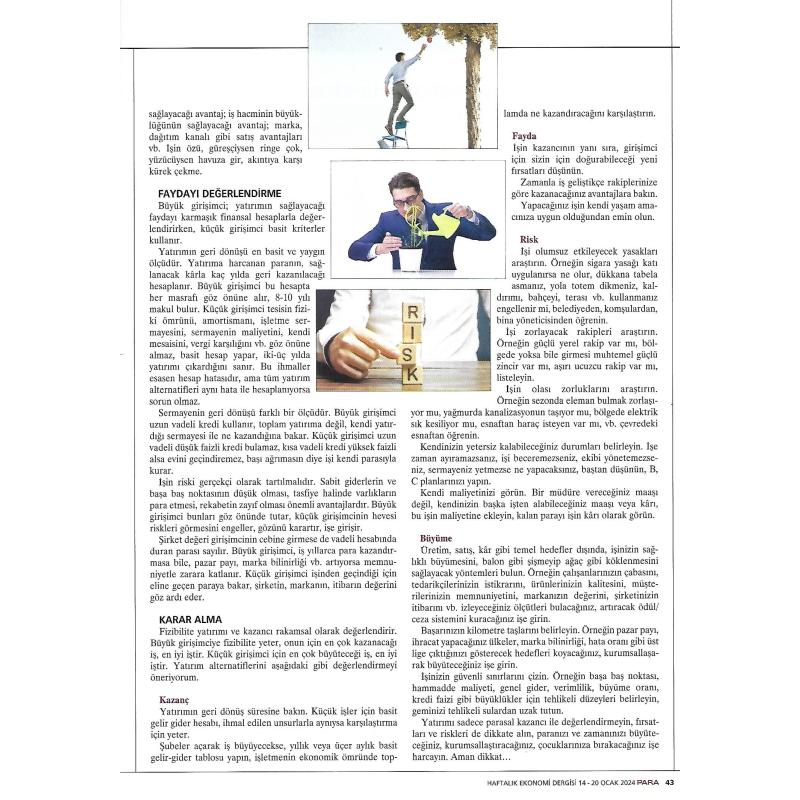 Yatırımı sadece parasal kazancı ile değerlendirmeyin, fırsatları ve riskleri de dikkate alın, paranızı ve zamanınızı büyüteceğiniz, kurumsallaştıracağınız, çocuklarınıza bırakacağınız işe harcayın. Aman dikkat..