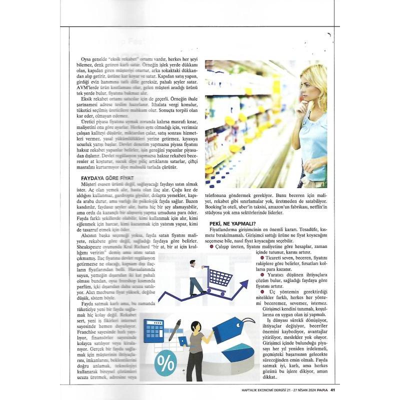 Her girişimci fiyata farklı yaklaşır. Kimi ucuza satıp cirosunu artırmak ister, kimi pahalıya satıp karını artırmak ister. Kimi pazarda satar, fiyatını rakiplere uydurur, kimi butik kalır, kendi fiyatını koyar. Kimi sektörün liderdir, fiyat düzeyini belirler, kimi liderin dümen suyunda ilerler, fiyatını hep onun biraz altında tutar. Doğrusu hangisi diye sormanın alemi yok, herkes kendince haklı.