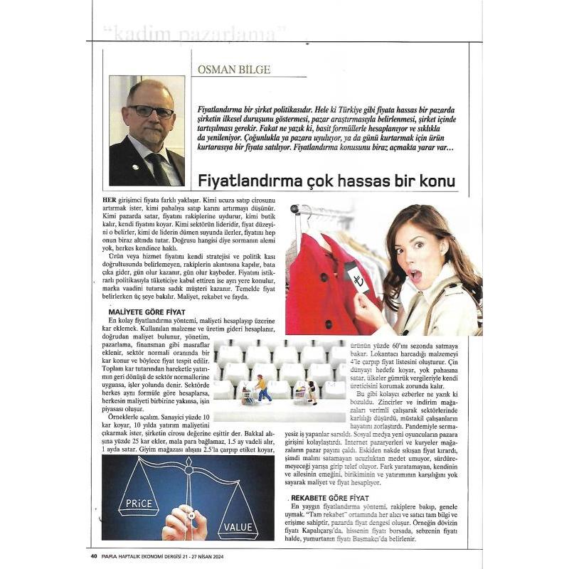 Fiyatlandırma bir şirket politikasıdır. Hele ki Türkiye gibi fiyata hassas bir pazarda şirketin ilkesel duruşunu göstermesi, pazar araştırmasıyla belirlenmesi, şirket içinde tartışılması gerekirken, basit formüllerle hesaplanır, belli sıklıkta yenilenir. Çoğunlukla ya pazara uyar veya günü kurtarmak için kurtarasıya satar. Fiyatlandırma konusunu biraz açmakta yarar var.